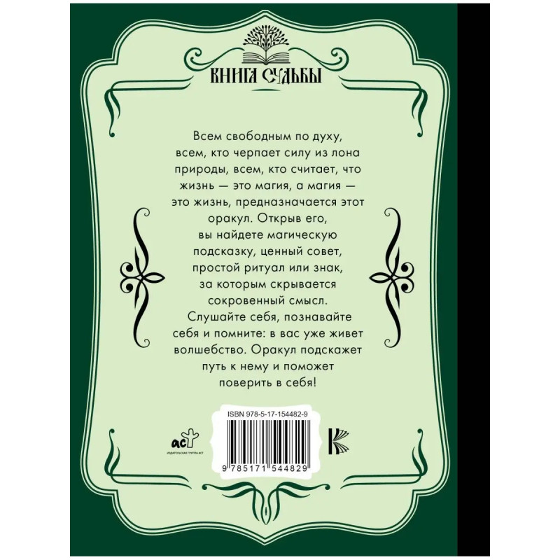 Всем свободным по духу, всем, кто черпает силу из лона природы, всем, кто считает, что жизнь это магия, а магия это жизнь, предназначается этот оракул. Открыв его, вы найдете магическую подсказку, ценный совет, простой ритуал или знак, за которым скрывается сокровенный смысл. Слушайте себя, познавайте себя и помните: в вас уже живет волшебство. Оракул подскажет путь к нему и поможет поверить в себя!