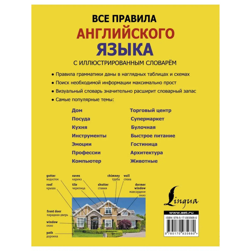 В серию Все правила + иллюстрированный словарь входят пособия по основным иностранным языкам. В книгу Все правила английского языка с иллюстрированным словарем вошли основные правила английской грамматики и визуальный словарь по самым популярным темам. Правила грамматики даются в четких и наглядных таблицах и схемах, делающих поиск нужной информации предельно простым и быстрым. Визуальный словарь позволяет значительно расширить словарный запас. Таким образом в одной книге решаются две задачи: приобретение теоретических знаний о грамматике английского языка и обогащение словарного запаса. Издание адресовано всем, кто учит английский язык в школе, вузе, на курсах или самостоятельно.