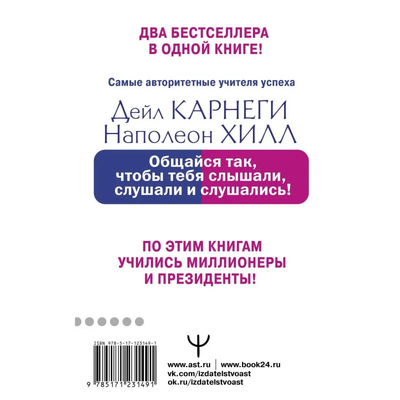 Два бестселлера в одной книге! Вы хотите научиться разговаривать так, чтобы собеседник полностью проникся вашей идеей? Вы хотите, чтобы о вас говорили как о привлекательном человеке? Деловые переговоры, выступления перед аудиторией или общение с начальником или любимым человеком их результаты, как правило, зависят от вашего умения говорить. Как выстроить свою речь? С чего начать? Как сказать о главном? Как понравиться? На эти вопросы ответят два самых авторитетных автора, два человека, которые заслужили признание и уважение миллионов людей по всему миру, Дейл Карнеги и Наполеон Хилл. В этой книге вас ждут яркие примеры, поучительные истории, а также вопросы и задания, которые позволят вам при любых обстоятельствах держаться уверенно, говорить убедительно и вызывать восхищение!