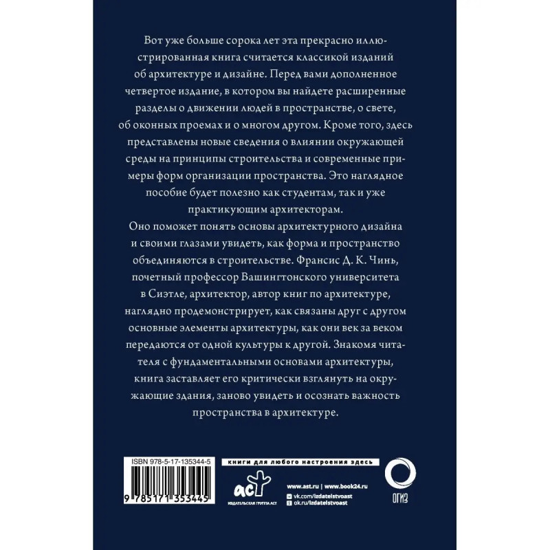 Дополненное четвертое издание классической книги по архитектуре и дизайну архитектора, профессора Вашингтонского университета Франсиса Д. К. Чиня.