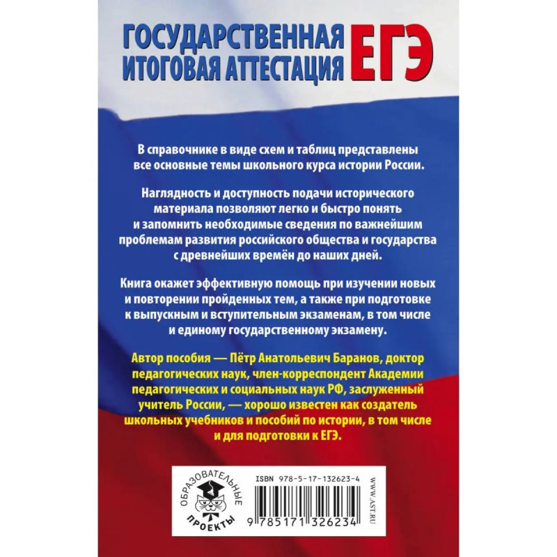 Справочник включает все основные темы школьного курса истории России для 1 11 классов и соответствует Федеральному образовательному стандарту среднего (полного) общего образования. В соответствии с требованиями ЕГЭ пособие включает теоретический материал с древнейших времен до 213 года. Наглядная форма изложения - в виде схем и таблиц, - способствует его лучшему пониманию, усвоению и запоминанию. Книга окажет эффективную помощь при изучении новых и повторении пройденных тем, а также при подготовке к единому государственному экзамену.