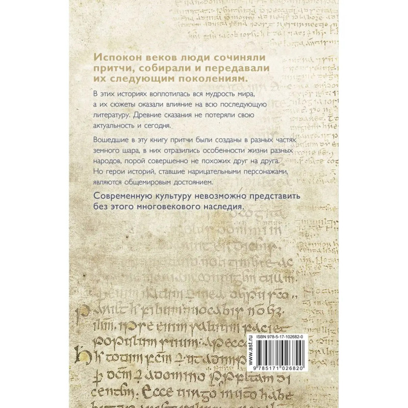 Испокон веков люди сочиняли притчи, собирали и передавали их следующим поколениям. В этих историях воплотилась вся мудрость мира, а их сюжеты оказали влияние на всю последующую литературу. Древние сказания не потеряли свою актуальность и сегодня. Вошедшие в эту книгу притчи были созданы в разных частях земного шара, в них отразились особенности жизни разных народов, порой совершенно не похожих друг на друга. Но герои историй, ставшие нарицательными персонажами, являются общемировым достоянием. Современную культуру невозможно представить без этого многовекового наследия.