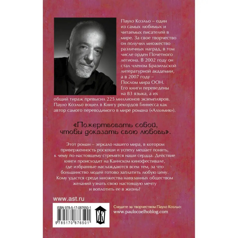 В романе "Победитель остается один" Пауло Коэльо возвращается к важным темам, поднятым в книгах "Одиннадцать минут" и "Заир". Этот роман зеркало нашего мира, в котором приверженность роскоши и успеху мешает понять, к чему по-настоящему стремятся наши сердца. Действие книги происходит на Каннском кинофестивале, где избранные наслаждаются всем тем, за что большинство людей готово заплатить любую цену. Кому удастся среди множества навязанных обществом желаний узнать свою настоящую мечту и воплотить ее в жизнь?