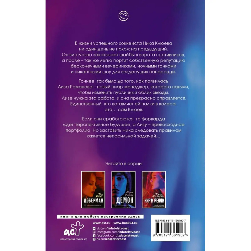 Ник Клюев звезда хоккея, которого ждет еще более многообещающее будущее. Но есть проблема: Нику на это будущее плевать, как и на потенциальную должность капитана команды. Что интересует Ника, так это громкие вечеринки, скандальные шоу, ночные гонки и прочие отвязные занятия. Новый пиар-менеджер Лиза Романова, нанятая, чтобы перевоспитать Клюева, тоже не промах. Перечить ей не так-то легко: Лиза профессионал своего дела и может проявить твердость, когда нужно. Впрочем, с Клюевым ее магия сразу же терпит крах. Кто кого? Перед нами, похоже, поединок века...