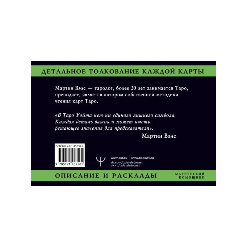Книга Мартина Вэлса Таро Уэйта. Детальное толкование каждой карты. Описание и расклады раскрывает все секреты трактовки карт Таро. Знания, которые Мастер передает в этой книге, позволят понять значение всех символов и знаков Таро. Книга написана простым языком для широкого круга читателей и поможет быстро изучить систему Таро и сделать индивидуальные и максимально точные предсказания. Кроме того, это цветное издание станет отличным подарком для любого, кто жаждет открыть секреты Таро!