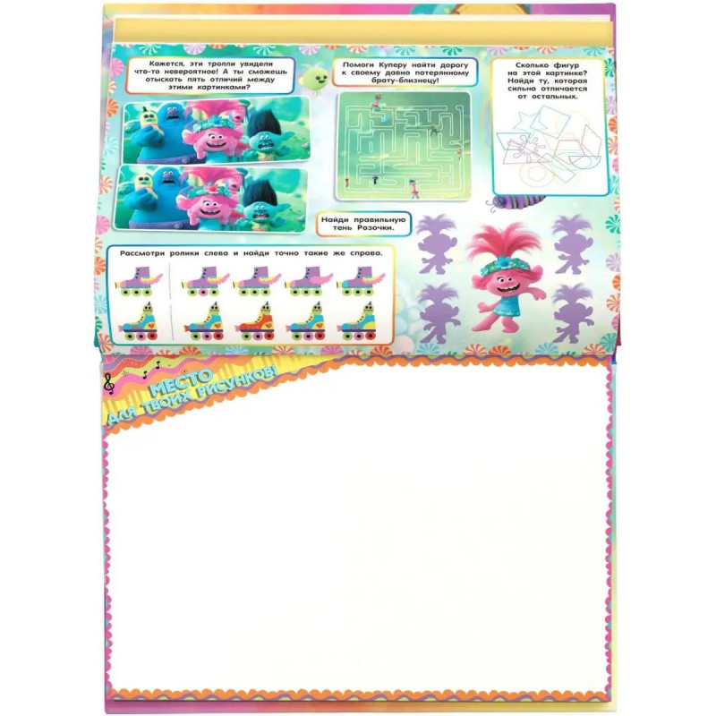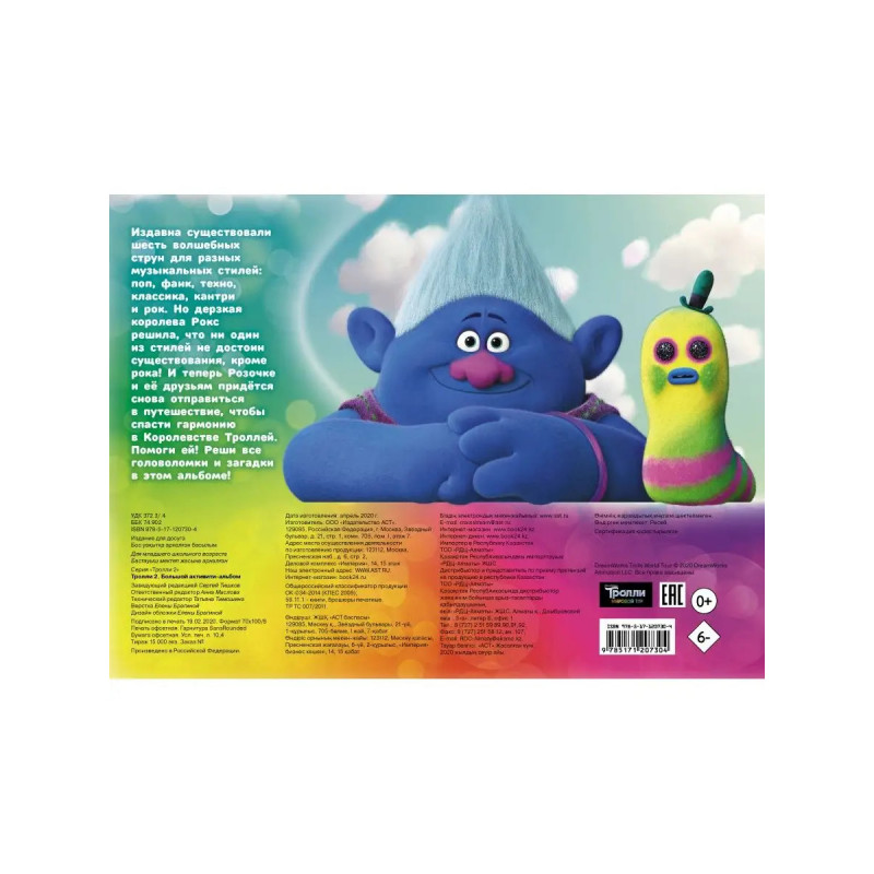 Издавна существовали шесть волшебных струн для разных музыкальных стилей: поп, фанк, техно, классика, кантри и рок. Но дерзкая королева Рокс решила, что ни один из стилей не достоин существования, кроме рока! И теперь Розочке и её друзьям придётся снова отправиться в путешествие, чтобы спасти гармонию в Королевстве Троллей. Помоги ей! Реши все головоломки и загадки в этом альбоме!