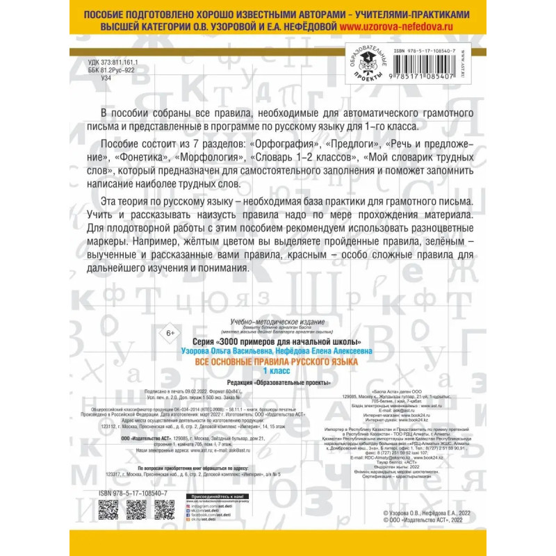 В пособии собраны все правила, необходимые для автоматического грамотного письма. Без знания этой теории невозможно написать без ошибок различные проверочные работы. В пособие вошли основные правила, представленные во всех федеральных учебниках по русскому языку для 1-го класса.