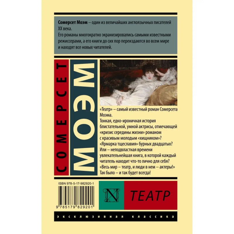 "Театр" самый известный роман Сомерсета Моэма. Тонкая, едко-ироничная история блистательной, умной актрисы, отмечающей "кризис середины жизни" романом с красивым молодым "хищником"? "Ярмарка тщеславия" бурных двадцатых? Или неподвластная времени увлекательнейшая книга, в которой каждый читатель находит что-то лично для себя? "Весь мир театр, и люди в нем актеры!" Так было и так будет всегда!