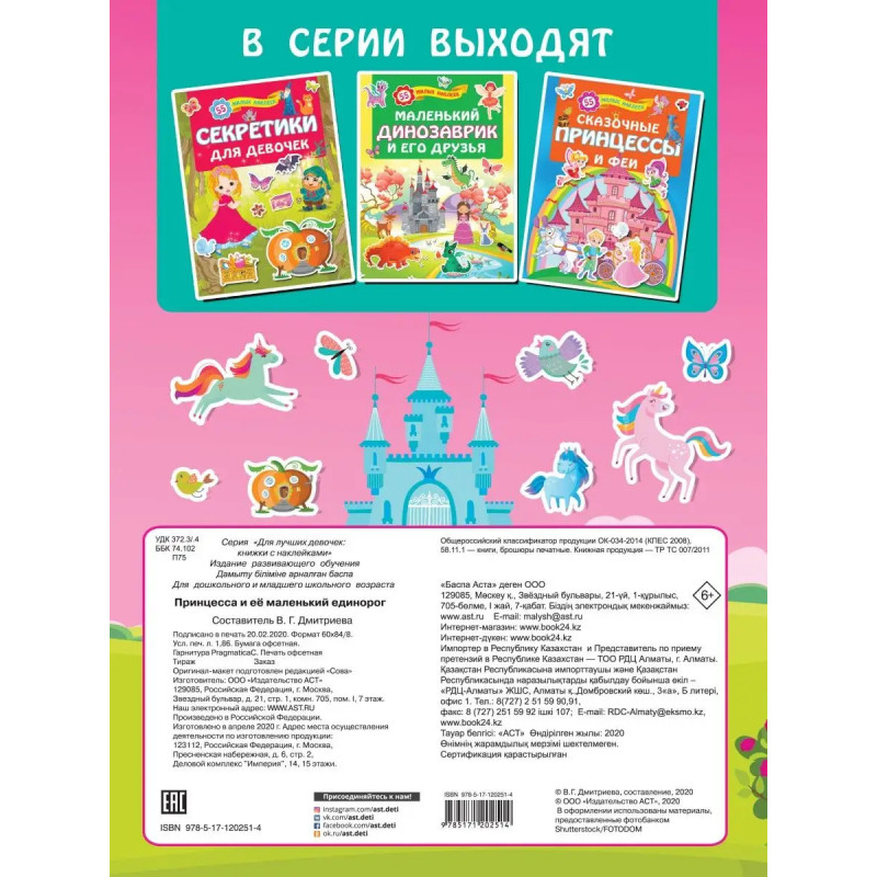 О чем эта книга Серия книг Для лучших девочек: книжки с наклейками привлечёт внимание покупателей яркой обложкой, подборкой увлекательных развивающих игр + замечательной коллекцией наклеек и красочными иллюстрациями, которые девочки с удовольствием будут разглядывать и украшать. Кому эта книга будет интересна Красочно иллюстрированная книга о мире удивительных единорогов порадует девочек, а также их подружек. Каковы особенности этой книги Увлекательные развивающие игры + замечательная коллекция наклеек. Все девочки любят играть с наклейками! С нашей книгой эта игра превратится в полезное и увлекательное занятие придумать, наклеить, рассказать. По рисункам можно сочинять свои сказочные истории такие занятия развивают эстетическое восприятие, творческие способности. Замечательная книжка с наклейками не оставит равнодушной ни одну очаровательную девочку!