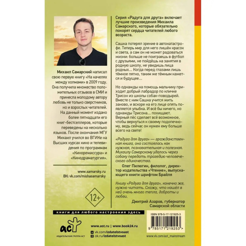 Сашка потерял зрение в автокатастрофе. Теперь мир для него лишён красок и света, а сам он не может радоваться жизни: больше не поиграешь в футбол с друзьями, не пойдёшь на занятия в родную школу, не увидишь лица родных... Когда перед глазами лишь тёмное пятно, таким же тёмным кажется и будущее... Но однажды на помощь мальчику приходит лабрадор по кличке Трисон из школы собак-поводырей. Вместе с ним Сашка учится жить заново, и вскоре на него лице опять появляется улыбка. И всё бы ничего, но однажды Трисона... похищают. Верный пёс сделает всё возможное, чтобы вернуться к своему подопечному, ведь сейчас он нужен ему больше всего на свете!