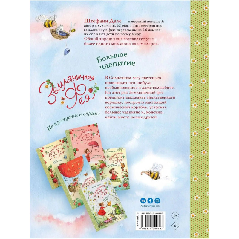 Редакция Вилли Винки представляет! Штефани Дале - известный немецкий автор и художник. Ее сказочные истории про земляничную фею переведены на 16 языков, их обожают дети по всему миру. Общий тираж книг составляет уже более одного миллиона экземпляров. В Солнечном лесу частенько происходит что-нибудь необыкновенное и даже волшебное. На этот раз Земляничной фее предстоит выследить таинственного воришку, построить настоящий космический корабль, устроить большое чаепитие и, конечно, найти много новых друзей.