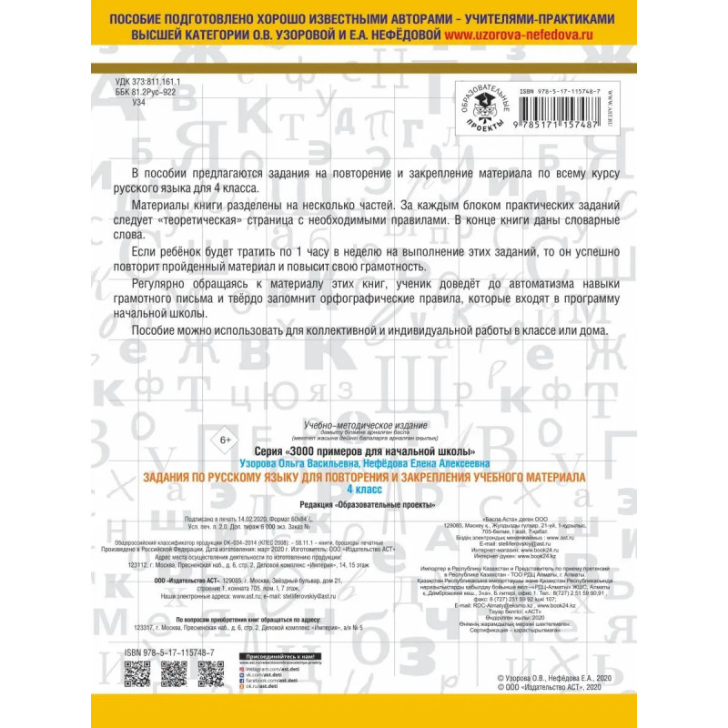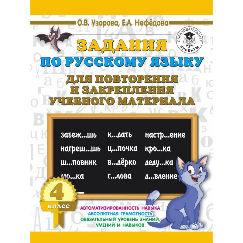 В пособии известных педагогов-практиков, авторов самых издаваемых учебников и учебных пособий в России О.В. Узоровой и Е.А. Нефёдовой предлагаются задания на повторение и закрепление материала по всему курсу русского языка для 4 класса. За каждым блоком практических заданий следует страница с необходимыми правилами. Занимаясь по этому пособию, ученик доведёт до автоматизма навыки граммотного письма и твёрдо запомнит орфографические правила, которые входят в программу начальной школы.Пособие можно использовать для коллективной и индивидуальной работы в классе или дома.