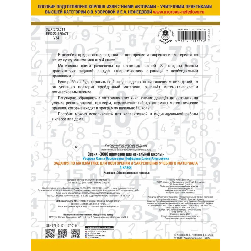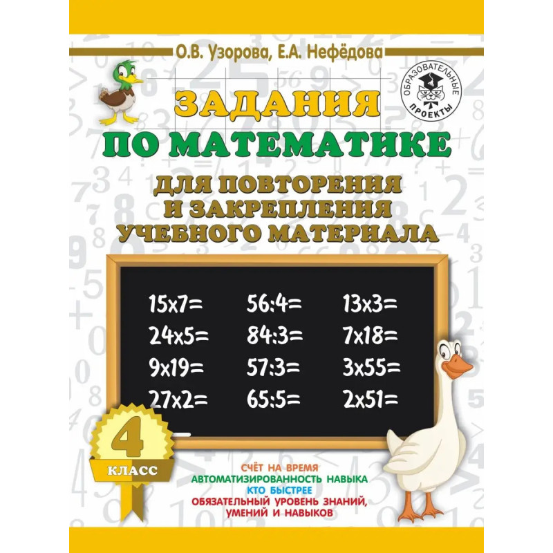 В пособии известных педагогов-практиков, авторов самых издаваемых учебников и учебных пособий в России О.В. Узоровой и Е.А. Нефёдовой предлагаются задания на повторение и закрепление материала по всему курсу математики для 4 класса.За каждым блоком практических заданий следует страница с необходимыми правилами. Регулярно занимаясь по этому пособию, ученик доведёт до автоматизма умение решать задачи, примеры, неравенства, твёрдо запомнит математические правила, которые входят в программу начальной школы.Пособие можно использовать для коллективной и индивидуальной работы в классе или дома.