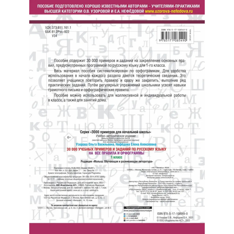 Пособие известных педагогов-практиков, авторов самых издаваемых учебников и учебных пособий в России О.В. Узоровой и Е.А. Нефёдовой содержит примеры и задания на закрепление основных правил, предусмотренных программой по русскому языку для 1 класса. В начале каждого раздела даны теоретические сведения, повторив которые, учащиеся выполняют практические заданияПособие поможет школьникам усвоить орфографические правила и навыки грамотного письма.Пособие можно использовать для коллективной и индивидуальной работы в классе, а также для самостоятельных занятий дома.