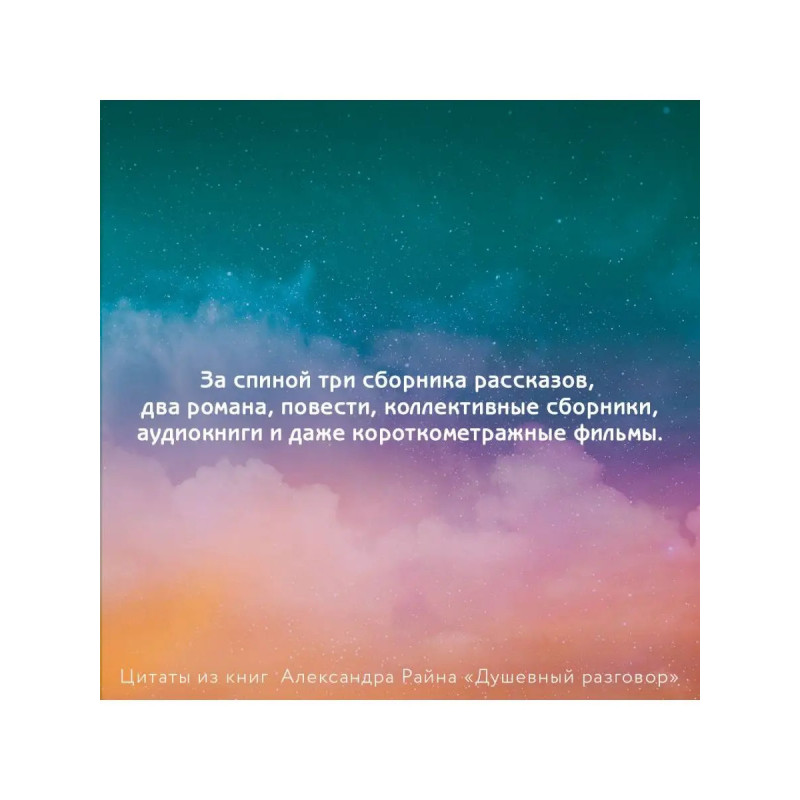 Душевный разговор легкие и жизненные истории, за которыми приятно скоротать вечер. Внутри нетривиальные сюжеты, меткие наблюдения за людьми и жизнью, много тепла и неожиданные развязки. Книга поможет открыть душу новым эмоциям и лучше узнать себя.