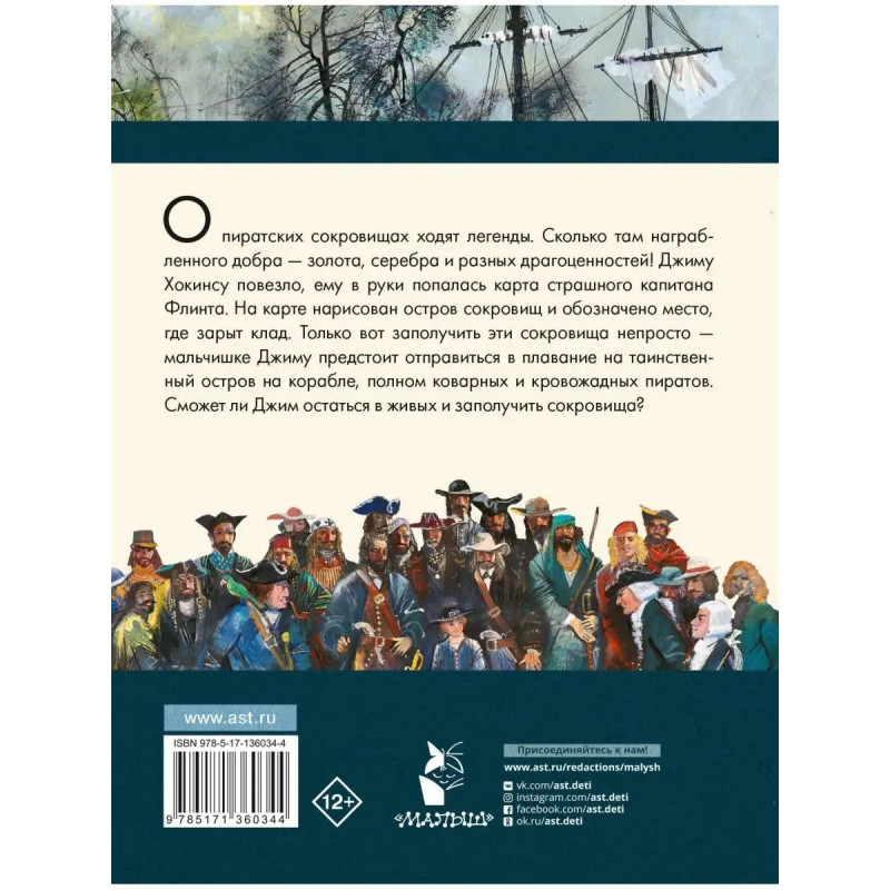 Уже около полутора веков дети читают роман английского писателя Роберта Льюиса Стивенсона "Остров сокровищ", и таинственный остров с пиратскими сокровищами будоражит воображение мальчишек и девчонок. Интересно, что роман изначально задумывался для детей и впервые был опубликован в детском журнале в конце XIX века. Он быстро завоевал популярность во всём мире и был переведён на множество языков. Отчаянных искателей сокровищ и коварных пиратов можно увидеть и на экране: по книге было снято множество фильмов и мультфильмов. Для среднего школьного возраста.