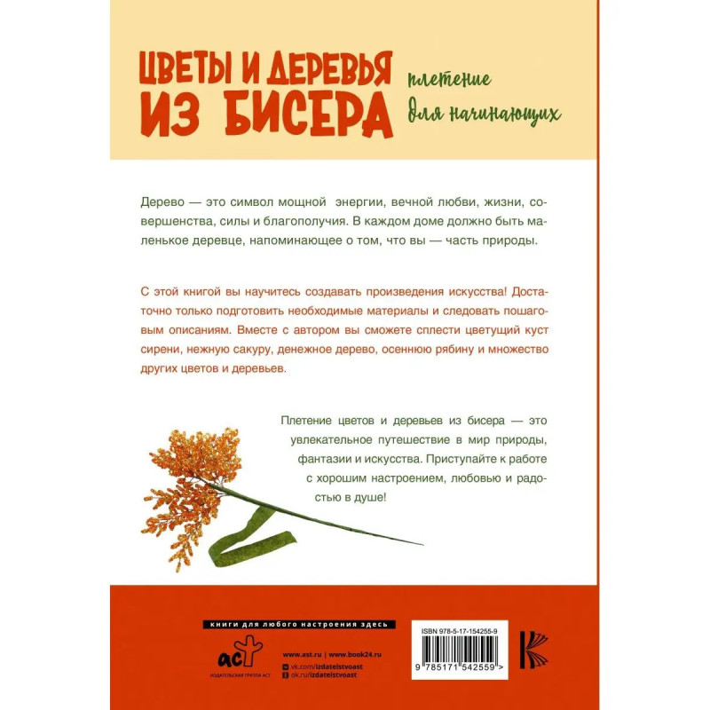 Елена Качалова занимается бисероплетением уже больше 1 лет, она сама составляет схемы плетения и композиции, а также обучает этому искусству всех желающих. Дерево это символ мощной энергии, вечной любви, жизни, совершенства, силы и благополучия. В каждом доме должно быть маленькое деревце, напоминающее о том, что вы часть природы. С этой книгой вы научитесь создавать произведения искусства! Достаточно только подготовить необходимые материалы и следовать пошаговым описаниям. Вместе с автором вы сможете сплести цветущий куст сирени, нежную сакуру, денежное дерево, осеннюю рябину и множество других цветов и деревьев. Плетение цветов и деревьев из бисера это увлекательное путешествие в мир природы, фантазии и искусства. Приступайте к работе с хорошим настроением, любовью и радостью в душе!