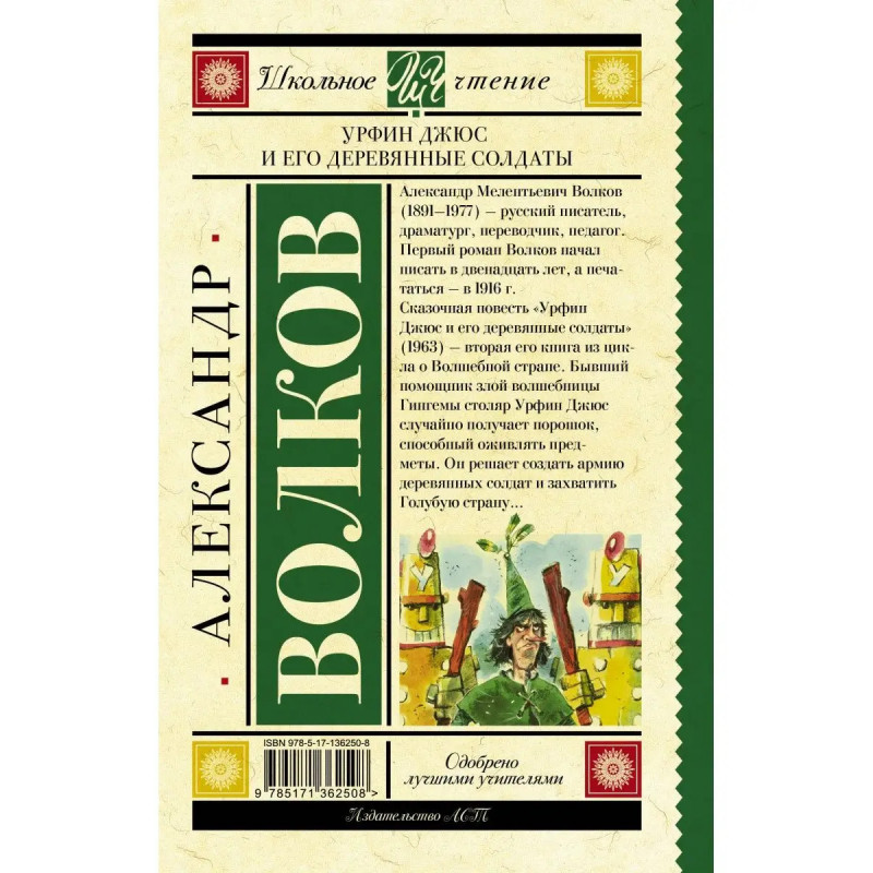 Александр Мелентьевич Волков (18911977) русский писатель, драматург, переводчик, педагог. Первый роман Волков начал писать в двенадцать лет, а печататься в 1916 году. Сказочная повесть "Урфин Джюс и его деревянные солдаты" (1963) вторая его книга из цикла о Волшебной стране. Бывший помощник злой волшебницы Гингемы, столяр Урфин Джюс случайно получает порошок, способный оживлять предметы. Он решает создать армию деревянных солдат и захватить Голубую страну