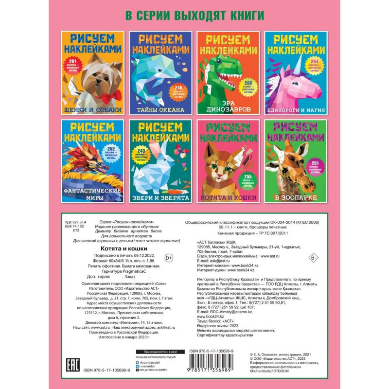 В новой серии книг Рисуем наклейками игровые задания с геометрическими стикерами, необыкновенно популярные во всем мире. В уникальной книжке ребята увидят пушистых домашних любимцев, которых можно раскрасить стикерами, подобрав наклейки по номерам. Юным художникам обязательно понравятся интересные задания на развитие логики, памяти, внимания, мелкой моторики. Книжка для всех, кто любит рисовать и своими руками создавать коллажи из наклеек. Черно-белые страницы будут превращаться в удивительные картины с 3D-эффектом. Выполняя задания по образцу, ребёнку придется подумать: сравнить рисунки по форме и цвету, посчитать количество стикеров, правильно расположить их на странице. Выкладывая наклейку за наклейкой, ребенок постепенно видит, как появляется яркая картинка из кусочков мозаики, учится воспринимать связь между целой картинкой и ее частями. Главное в развивающих занятиях усердие, аккуратность и четкое выполнение задания. Рисуем наклейками, развиваем логику, внимание, запоминаем цифры!