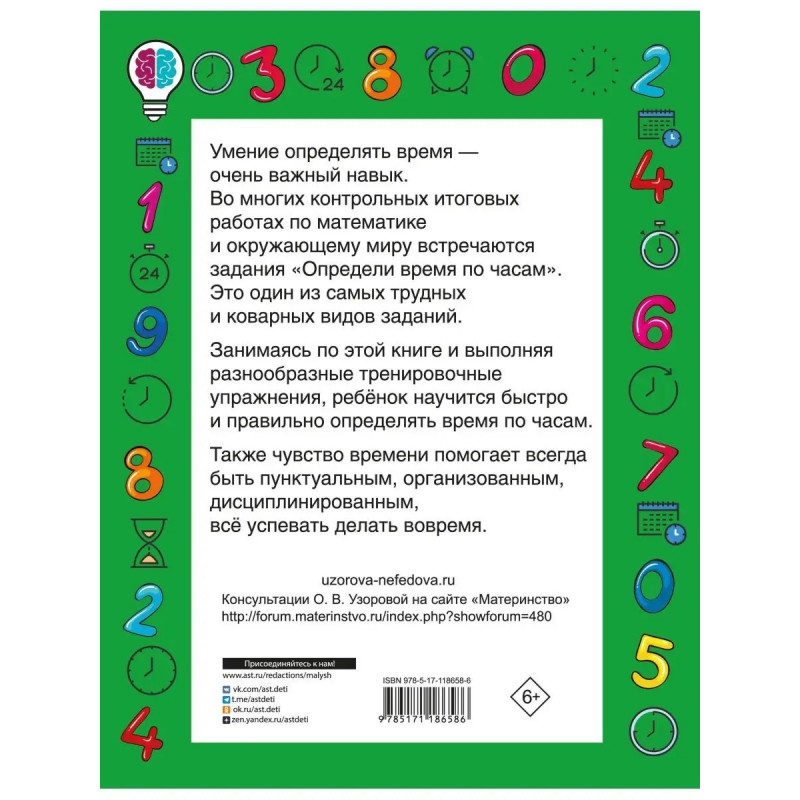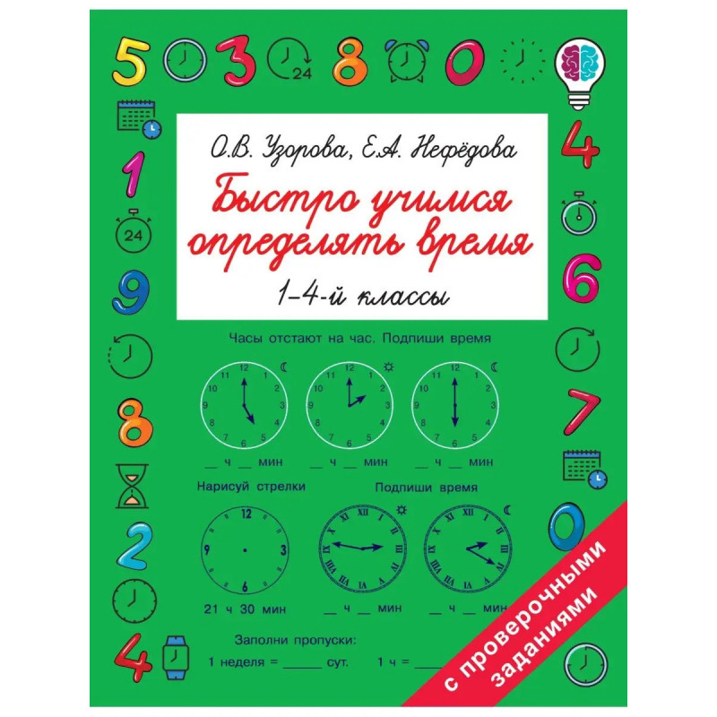 О чём эта книгаВ пособии известных педагогов-практиков О. В. Узоровой и Е. А. Нефёдовой предложены разнообразные задания, которые помогут научиться легко определять время по часам. Кому эта книга будет интереснаДля учащихся начальной школы. Каковы особенности этой книги Очень важно уметь определять время по часам. Занимаясь по этой книге и выполняя разнообразные задания, ребёнок научится определять время по часам. Высокоэффективный учебный тренинг базируется на современных методиках. Пособие можно использовать на уроках математики в школе и для занятий дома.