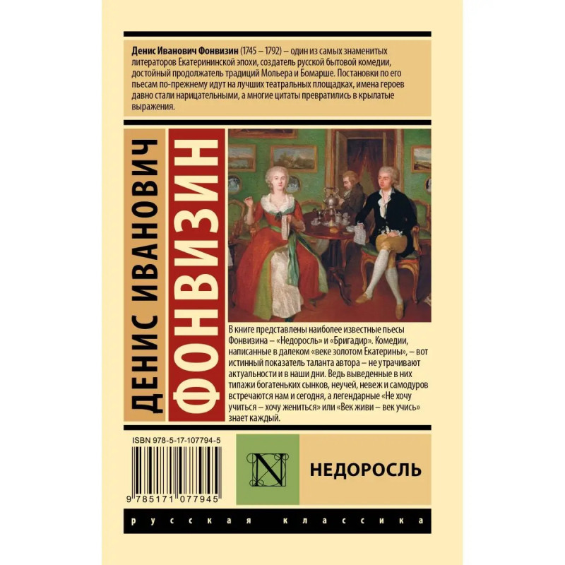 В книге представлены наиболее известные пьесы Д.И. Фонвизина "Недоросль" и "Бригадир". Комедии, написанные в далеком "веке золотом Екатерины" вот истинный показатель таланта автора, не утрачивают актуальности и в наши дни. Ведь выведенные в них типажи богатеньких сынков, неучей, невеж и самодуров встречаются нам и сегодня, а легендарные "Не хочу учиться хочу жениться" или "Век живи век учись" знает каждый.