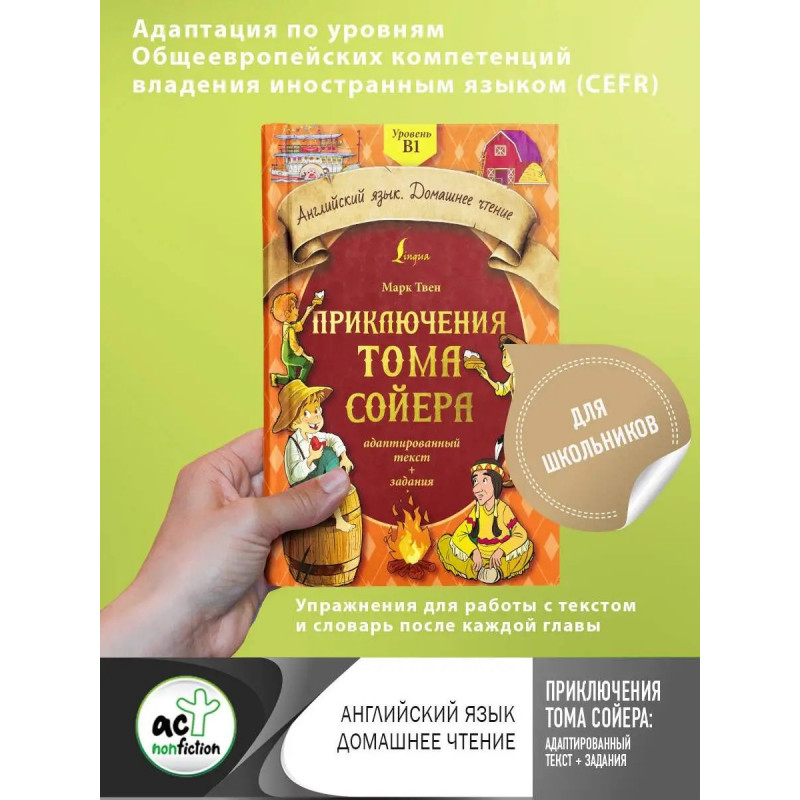 Книги серии "Английский язык. Домашнее чтение" это адаптации произведений мировой классики, которые так полюбились читателям со всего мира. В данное издание вошло знаменитое произведение Марка Твена "Приключения Тома Сойера", о находчивом и озорном мальчике по имени Том, который, вместе со своим другом Гекльберри Финном, сумел поставить на уши тихий городок в Миссури. Текст соответствует уровню B1 (Intermediate) и сопровождается упражнениями, словарными словами, а также упражнениями на понимание текста. Адаптация и упражнения разработаны Анной Грек, учителем английского языка с большим опытом работы в школе, и соответствуют современным требованиям к образовательному материалу. Благодаря этому книги данной серии станут идеальным дополнением к учебникам для занятий в школе и с репетитором.