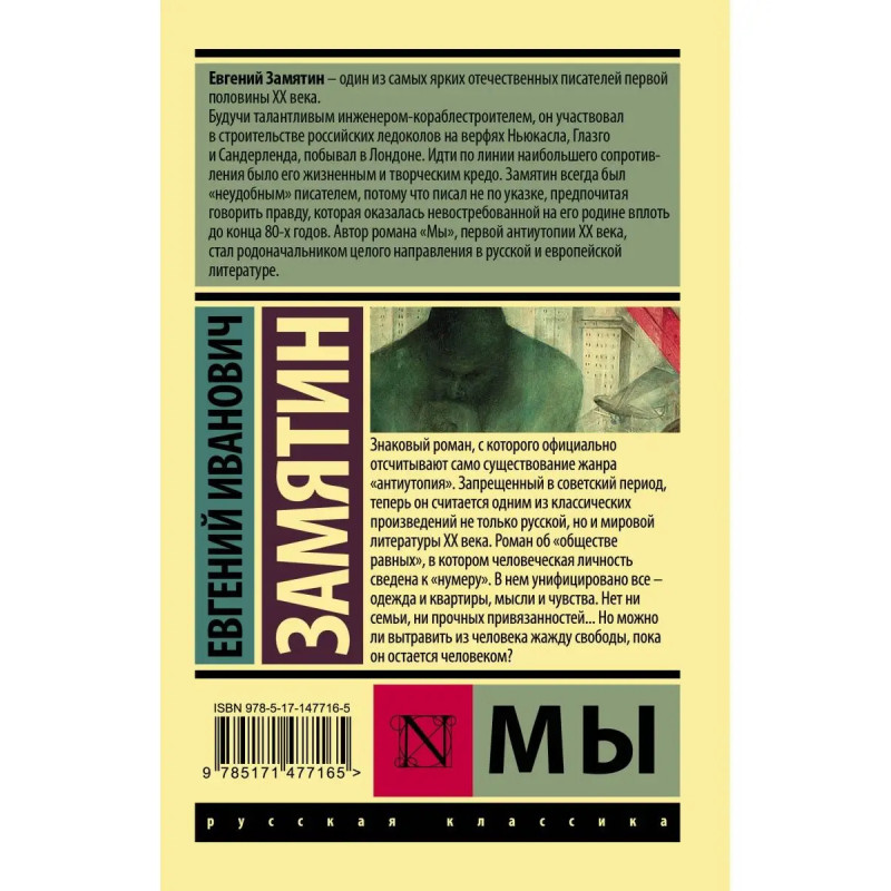 Знаковый роман, с которого официально отсчитывают само существование жанра "антиутопия" Запрещенный в советский период, теперь он считается одним из классических произведений не только русской, но и мировой литературы ХХ века. Роман об "обществе равных", в котором человеческая личность сведена к "нумеру". В нем унифицировано все одежда и квартиры, мысли и чувства. Нет ни семьи, ни прочных привязанностей... Но можно ли вытравить из человека жажду свободы, пока он остается человеком?