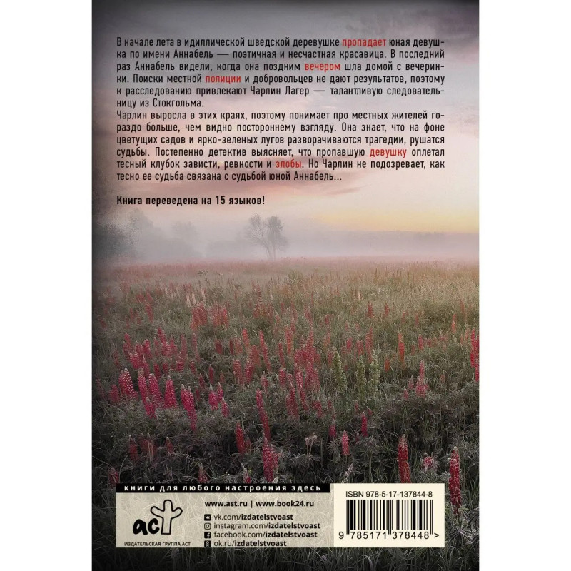 В начале лета в идиллической шведской деревушке пропадает юная девушка по имени Аннабель поэтичная и несчастная красавица. В последний раз Аннабель видели, когда она поздним вечером шла домой с вечеринки. Поиски местной полиции и добровольцев не дают результатов, поэтому к расследованию привлекают Чарлин Лагер талантливую следовательницу из Стокгольма. Чарлин выросла в этих краях, поэтому понимает про местных жителей гораздо больше, чем видно постороннему взгляду. Она знает, что на фоне цветущих садов и ярко-зеленых лугов разворачиваются трагедии, рушатся судьбы. Постепенно детектив выясняет, что пропавшую девушку оплетал тесный клубок зависти, ревности и злобы. Но Чарлин не подозревает, как тесно ее судьба связана с судьбой юной Аннабель...