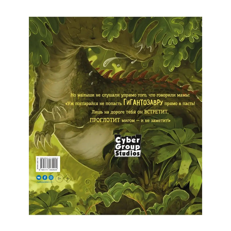 В джунглях объявился страшный Гигантозавр. Маленьким динозаврам стоит быть аккуратнее. И тут Мазу, которую оставили наблюдать за местностью, заскучала. Может, закричать: "ГИГАНТОЗАВР!" чтобы посмотреть, что же станут делать все вокруг? Это будет очень весело. Или нет? По мотивам книги в 219 году на телеканале Disney вышел одноимённый мультсериал. Четверо маленьких динозавров Роки, Мазу, Билл и Кроха живут в доисторических джунглях, и каждый день их ждут невероятные приключения. Малыши узнают много интересного об эпохе динозавров, а ещё о том, как победить свои страхи, что такое любовь и дружба, почему важно соблюдать меры безопасности.