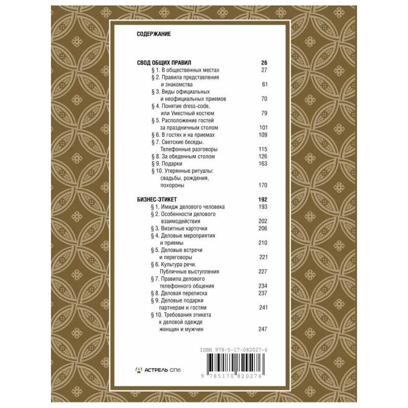 Эта книга прежде всего не "о манерах", она об оптимальной "модели поведения", в которой достоинство и вежливость имеют точный баланс и которая дает РОСКОШЬ БЫТЬ СОБОЙ. Хороший тон удобно, эффективно, выгодно! Когда много вопросов: ДА или НЕТ? МОЖНО или НЕЛЬЗЯ? Как ПРАВИЛЬНО? Что НАДЕТЬ? Что, чем и как есть? Куда поставитьположить? Быть или не быть? Полный свод правил современного европейского этикета поможет ответить на множество общих и частных вопросов и избежать неловких ситуаций. Многое разрешено, мы просто не все знаем об этом! В любых, даже неординарных событиях и при самых важных контактах вы будете увереннее и свободнее, на торжественных приемах вы получите удовольствие, на деловых встречах лучший результат. В каждом пункте правил этикета существует логическая предпосылка, которая привела к его возникновению, а равно и психологический фактор, который наполняет этот пункт смыслом. С пониманием сути и логики, "сложные" и "трудновыполнимые" правила этикета станут для вас простыми и понятными, а сле