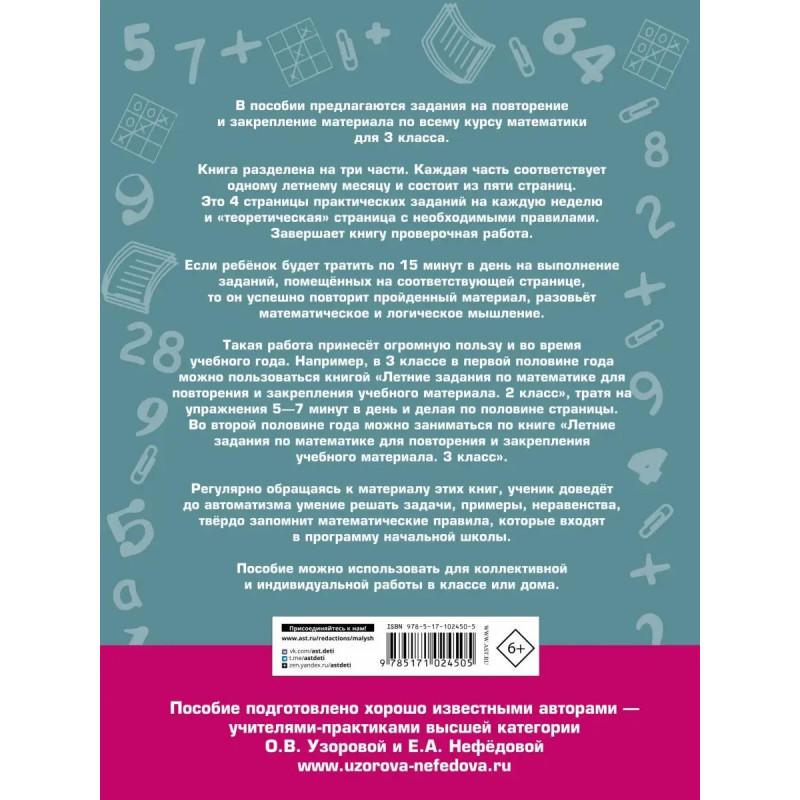 Характеристики Летние задания по математике. 3 класс.