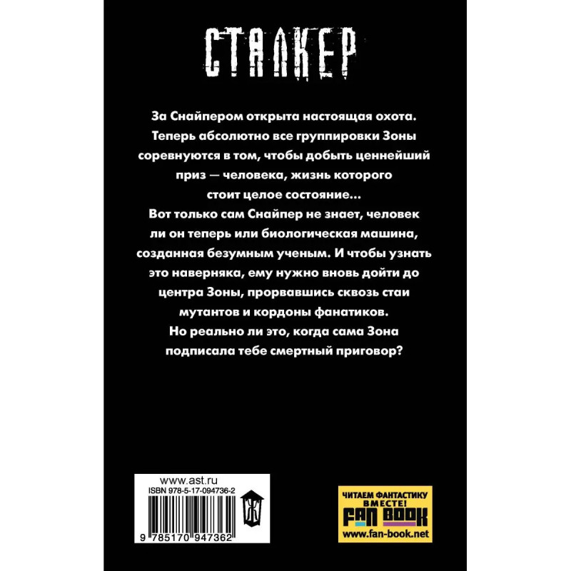 За Снайпером открыта настоящая охота. Теперь абсолютно все группировки Зоны соревнуются в том, чтобы добыть ценнейший приз - человека, жизнь которого стоит целое состояние... Вот только сам Снайпер не знает, человек ли он теперь, или биологическая машина, созданная безумным ученым. И чтобы узнать это наверняка, ему нужно вновь дойти до центра Зоны, прорвавшись сквозь стаи мутантов и кордоны фанатиков. Но реально ли это, когда сама Зона подписала тебе смертный приговор?