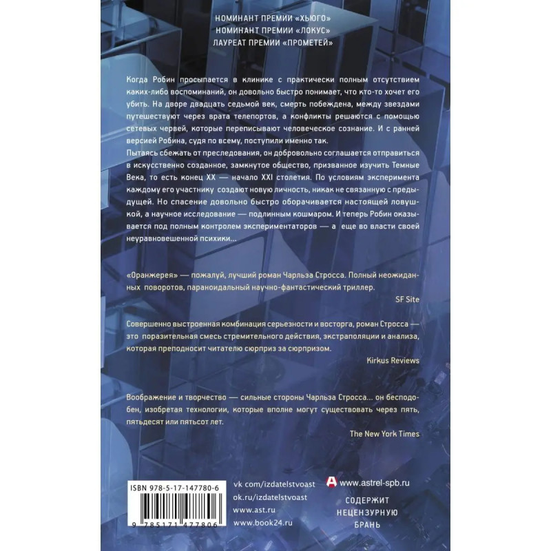 Впервые на русском языке! Новая книга от автора бестселлера Аччелерандо и цикла Прачечная. Оранжерея удостоилась номинаций на премии Хьюго и Локус в категории Лучший роман и завоевала премию Прометей. Для всех поклонников твердой научной фантастики. Приятный бонус: рассказ Бродячая ферма!