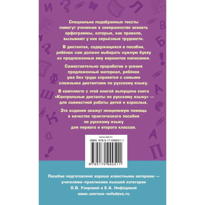Пособие известных педагогов-практиков, авторов самых издаваемых учебников и учебных пособий в России О.В. Узоровой и Е.А. Нефёдовой поможет ученикам первого и второго классов самостоятельно подготовиться к контрольным диктантам по русскому языку.