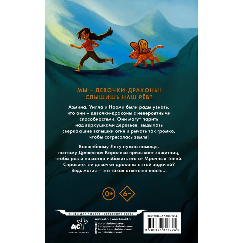 Драконья сага для самых маленьких! Добрые приключения девочек-дракончиков понравятся поклонникам мультфильма Как приручить дракона и всем фанатам драконов. Книга занимает высокие строчки рейтинга Amazon(точка)com с мая 221 года! Красивые детские иллюстрации внутри. Азмина, Уилла и Наоми обычные девочки, которые узнали, что умеют превращаться в драконов и владеют магией. Теперь после школы они могут летать, выдыхать сверкающие вспышки огня и даже рычать, если понадобится! Но главное теперь они защищают Волшебный Лес и его жителей. И первое задание от Древесной Королевы спасти лес от теневых духов. Справятся ли девочки-драконы с этой задачей? Ведь магия это такая ответственность