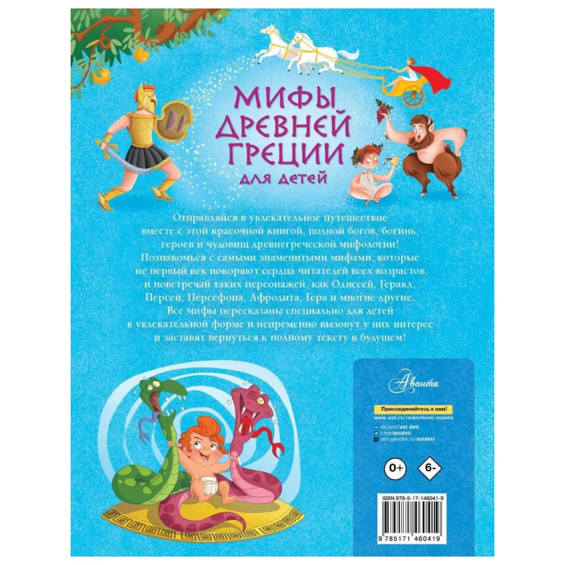 Отправляйся в увлекательное путешествие вместе с этой красочной книгой, полной богов, богинь, героев и чудовищ древнегреческой мифологии! Познакомься с самыми знаменитыми мифами, которые не первый век покоряют сердца читателей всех возрастов, и повстречай таких персонажей, как Одиссей, Геракл, Персей, Персефона, Афродита, Гера и многие другие. Все мифы пересказаны специально для детей в увлекательной форме и непременно вызовут у них интерес и заставят вернуться к полному тексту в будущем!
