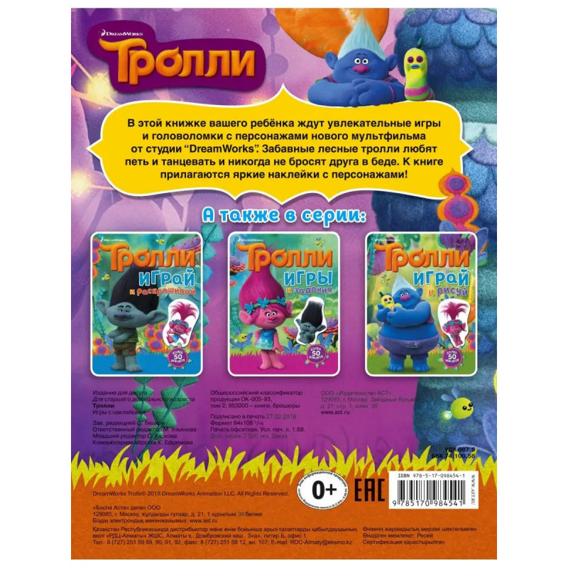 В этой книжке вашего ребёнка ждут увлекательные игры и головоломки с персонажами нового мультфильма от студии "DreamWorks". Забавные лесные тролли любят петь и танцевать и никогда не бросят друг друга в беде. К книге прилагаются яркие наклейки с персонажами мультфильма!
