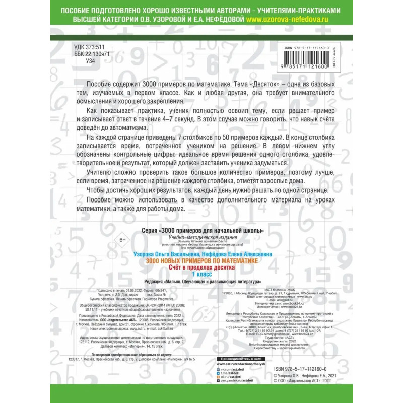 Характеристики 3000 новых примеров по математике. 1 класс.