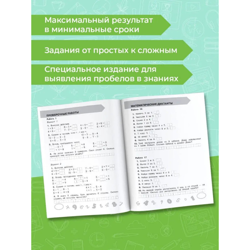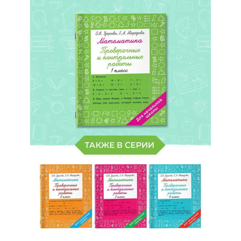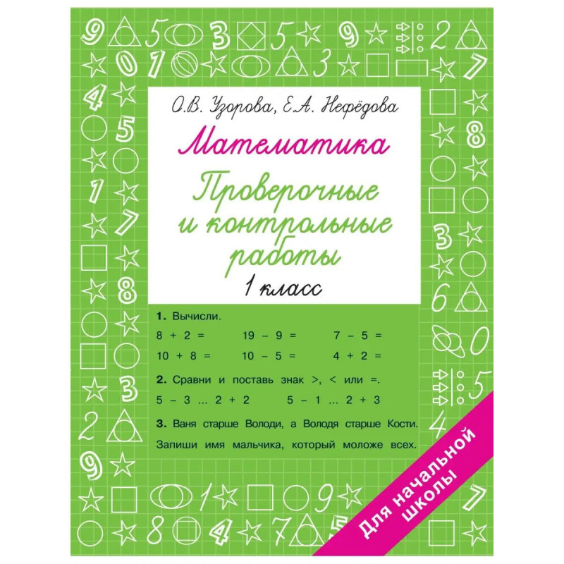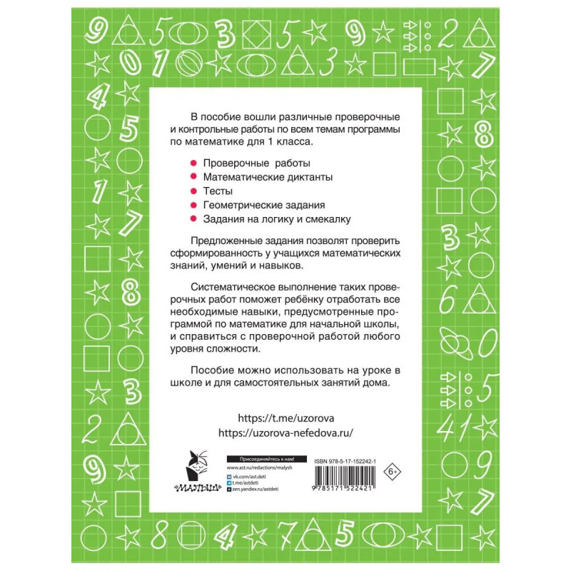 В пособии представлены различные проверочные и контрольные работы по всем темам программы по математике для 1 класса. В одной книге собраны контрольные работы, математические диктанты, тесты, геометрические задания, задания на логику и смекалку. Проверочные работы помогут ребёнку отработать все необходимые навыки, предусмотренные программой по математике для начальной школы, и справиться с проверочной работой любого уровня сложности. Пособие можно использовать на уроке в школе и для самостоятельных занятий дома.О. В. Узорова и Е.А Нефёдова известные педагоги-практики, авторы самых издаваемых учебников и учебных пособий в России. Основанные на авторской методике, доказавшей свою эффективность миллионными тиражами, эти пособия помогут родителям подготовить ребенка к школе, а ученикам легко и эффективно освоить программу начальной школы.