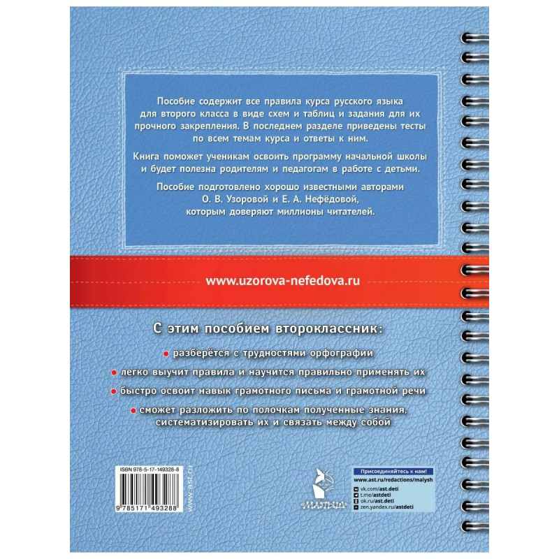 Хотите помочь ребёнку лучше учиться и систематизировать свои знания?Это пособие содержит все правила курса русского языка для второго класса в виде схем и таблиц и задания для их прочного закрепления. В последнем разделе приведены тесты по всем темам курса и ответы к ним. Пособие составлено экспертами детского образования, которым доверяют миллионы О.В. Узоровой и Е.А. Нефёдовой.С этим пособием первоклассник легко выучит правила и научится правильно применять их, быстро освоит навык грамотного письма и грамотной речи. Ребёнок сможет разложить по полочкам полученные знания, систематизировать их и связать между собой.Помогите ребёнку ходить в школу с радостью!