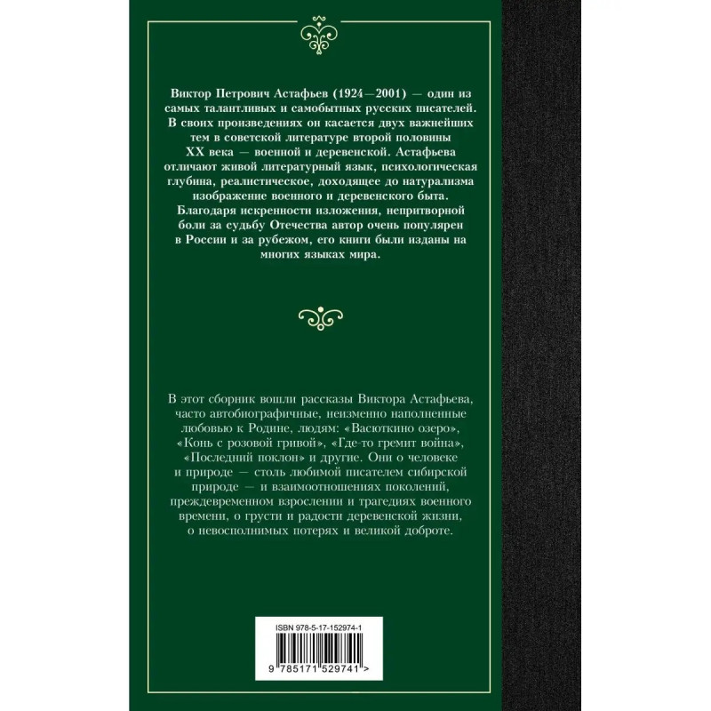 В этот сборник вошли рассказы Виктора Астафьева, часто автобиографичные, неизменно наполненные любовью к Родине, людям: "Васюткино озеро", "Конь с розовой гривой", "Где-то гремит война", "Последний поклон" и другие. Они о человеке и природе столь любимой писателем сибирской природе и взаимоотношениях поколений, преждевременном взрослении и трагедиях военного времени, о грусти и радости деревенской жизни, о невосполнимых потерях и великой доброте.
