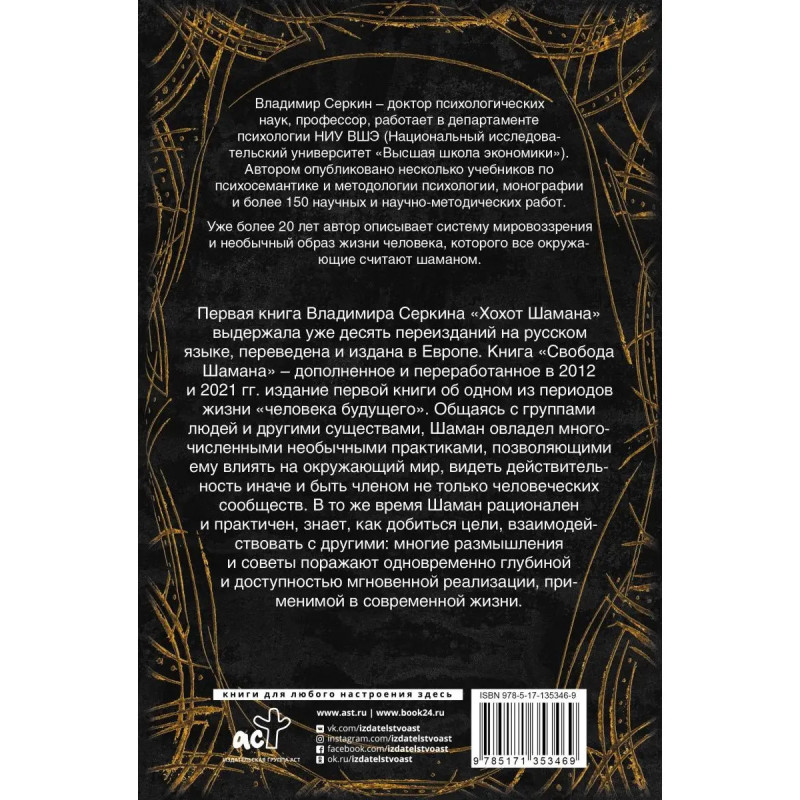 Владимир Серкин доктор психологических наук, профессор, работает в департаменте психологии НИУ ВШЭ (Национальный исследовательский университет Высшая школа экономики). Автором опубликовано несколько учебников по психосемантике и методологии психологии, монографии и более 15 научных и научно-методических работ. Уже более 2 лет автор описывает систему мировоззрения и необычный образ жизни человека, которого все окружающие считают шаманом.