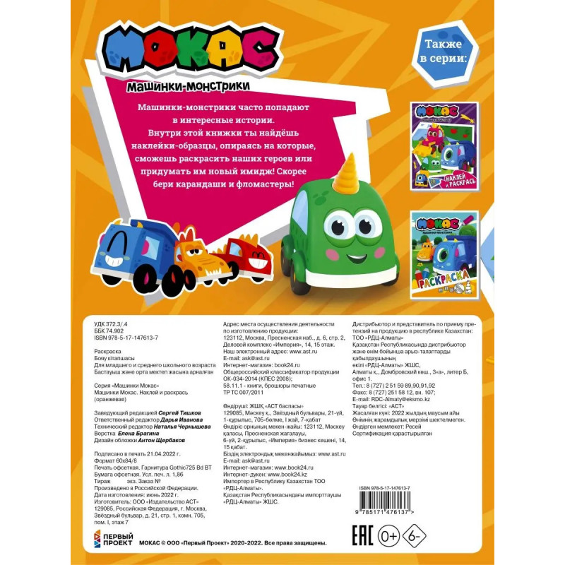Характеристики Машинки Мокас. Наклей и раскрась (оранжевая).