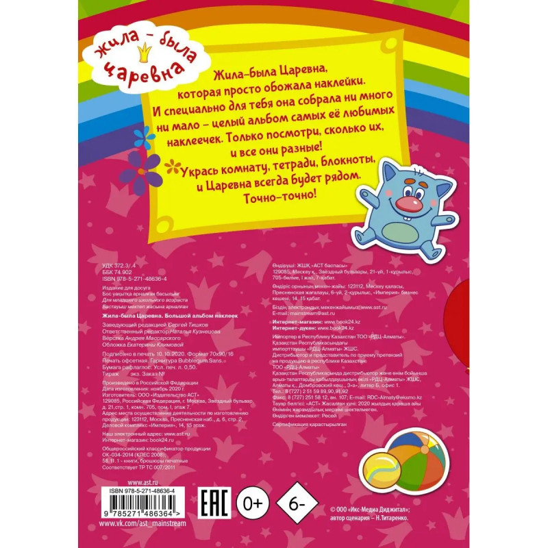 Характеристики Жила-была Царевна. Большой альбом наклеек.
