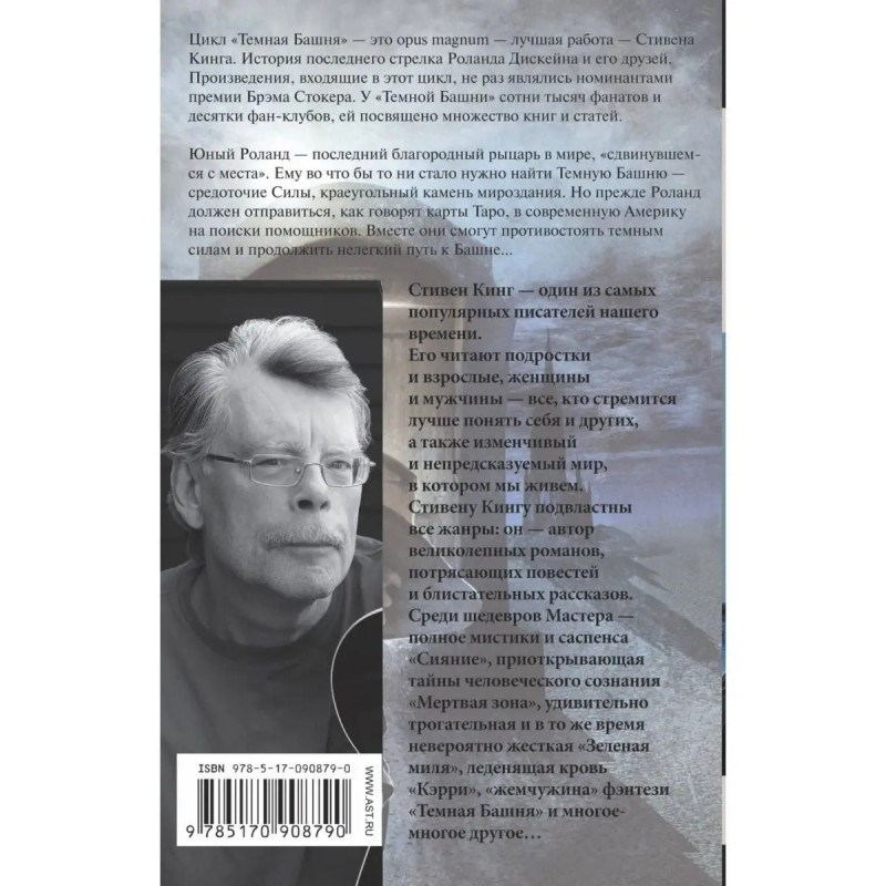 Цикл "Темная Башня" это opus magnum лучшая работа Стивена Кинга. История последнего стрелка Роланда Дискейна и его друзей. Произведения, входящие в этот цикл, не раз являлись номинантами премии Брэма Стокера. У "Темной Башни" сотни тысяч фанатов и десятки фан-клубов, ей посвящено множество книг и статей. Юный Роланд последний благородный рыцарь в мире, "сдвинувшемся с места". Ему во что бы то ни стало нужно найти Темную Башню средоточие Силы, краеугольный камень мироздания. Но прежде Роланд должен отправиться, как говорят карты Таро, в современную Америку на поиски помощников. Вместе они смогут противостоять темным силам и продолжить нелегкий путь к Башне