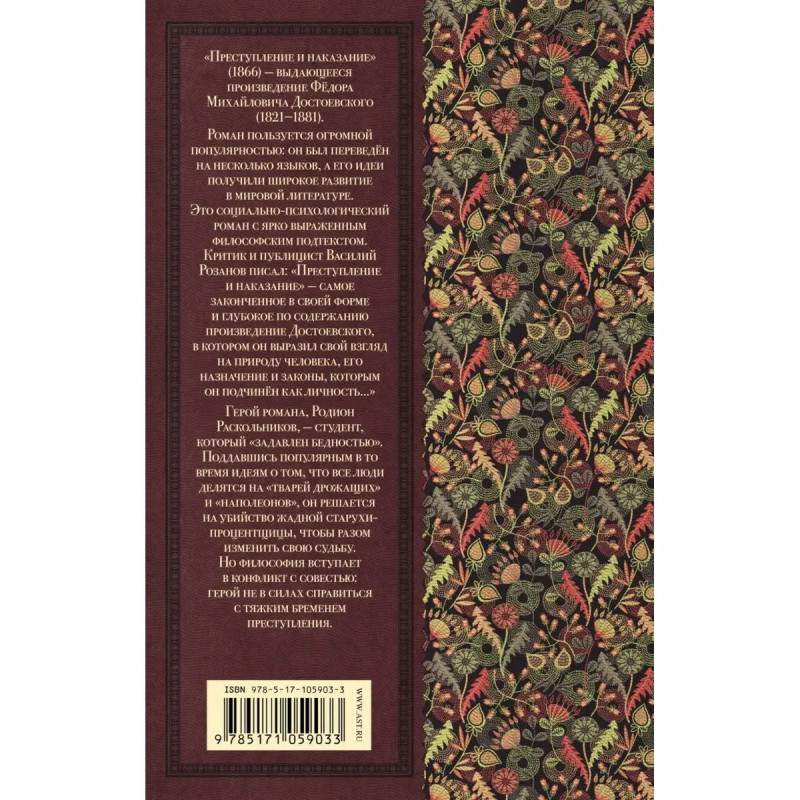 В книги этой серии входят произведения, которые включены в школьную программу. Преступление и наказание - одно из выдающихся произведений Фёдора Михайловича Достоевского. Роман пользуется огромной популярностью: он был переведён на несколько языков, а его идеи получили широкое развитие в мировой литературе.