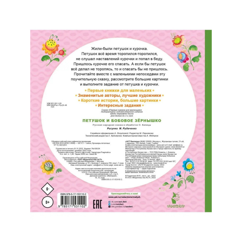 Жили-были петушок и курочка. Петушок всё время торопился-торопился, не слушал наставлений курочки и попал в беду. Пришлось курочке его спасать. А если бы петушок всё делал не торопясь, то и спасать бы не пришлось. Прочитайте вместе с маленькими непоседами эту поучительную сказку, рассмотрите большие картинки и выполните задание от петушка и курочки.