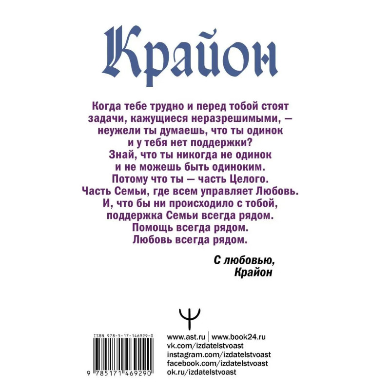 Книга Тамары Шмидт Крайон. Под защитой Вселенной. Помощь на каждый день это уникальные практики и вдохновляющие послания Божественного Духа Крайона, который с любовью дает ответы на самые актуальные вопросы наших дней и помогает вам найти путь к обретению самостоятельных ответов на любые вопросы. Российский ченнелер Тамара Шмидт передает нам послания Крайона, полные любви и поддержки, а также практики, вдохновляющие на позитивные перемены в своей судьбе.