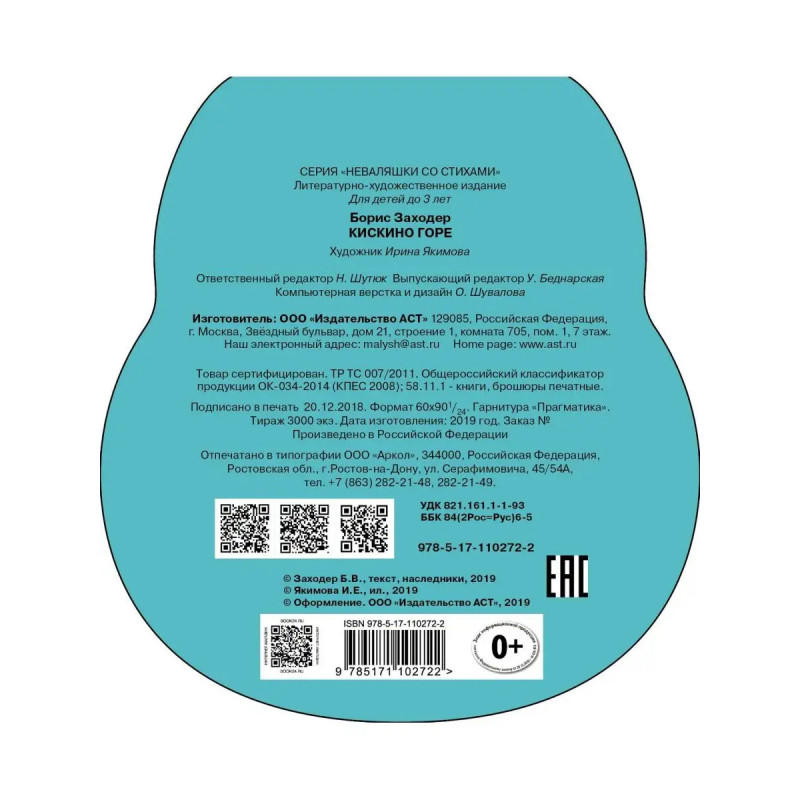 Самая любимая игрушка с первых дней жизни, такая детская и уютная неваляшка стала книжкой! Книжкой с чудесными добрыми стихами известных поэтов и забавными иллюстрациями современной российской художницы Ирины Якимовой. Весёлая игра вмиг превращается в весёлое чтение с родителями! А еще у книжки есть подвижные глазки: качните книжку-неваляшку и глазки задвигаются, как будто зверята живые. Книжка c красочными и яркими иллюстрациями обязательно привлечет внимание малыша, поможет развить крупную моторику, воображение и приучит малышей к чтению.