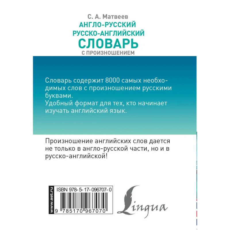Серия "Карманная библиотека словарей: лучшее" включает словари и пособия по русскому и иностранным языкам. Удобный формат и содержательность изданий позволяют необходимую информацию всегда иметь под рукой. "Англо-русский русско-английский словарь с произношением" отличается от других подобных словарей тем, что произношение английских слов дано русскими бувами, причем не только в англо-русской части, но и в русско-английской. Словарь предназначен для всех, кто стремится овладеть английским языком.